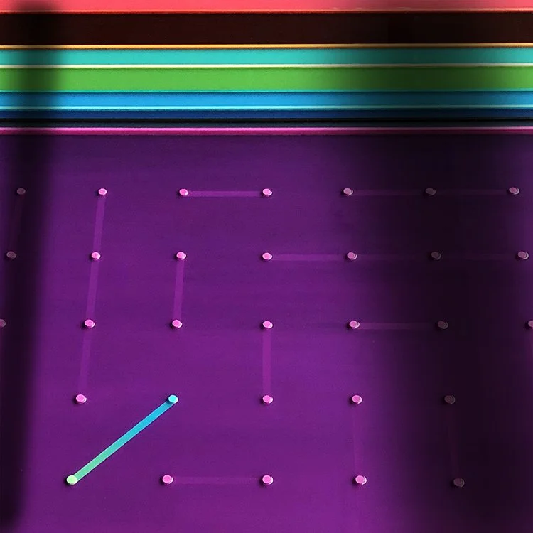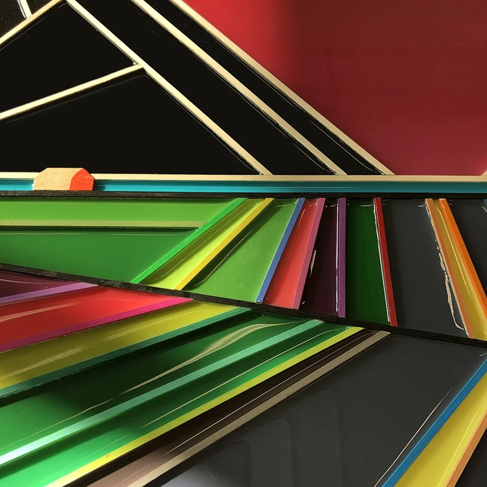 Dans mon travail, je recherche l’harmonisation entre les différents chemins ou liens que je crée pour ainsi obtenir un équilibre de la composition. Cette forme d’équilibre est transposée par la division des espaces et de la couleur. Les lignes en relief donnent de la profondeur aux œuvres et symbolisent que tout est en mouvement, en évolution dans le temps. De plus, la perspective et la lumière ajoutent de l’amplitude selon l’angle dans lequel on observe mes œuvres. Je souhaite donner à l’observateur.trice la sensation de plonger dans un tableau afin qu’il puisse se projeter dans son propre parcours.